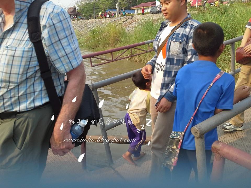 在这里逗留大约一小时多,我们有乘刚才的舢板回到对岸的泰国去。在上下游客的渡头有不少当地的孩童会缠着游客要钱,其实他们也很可怜的,因为寮国长期被共产党统治加上对外交封闭的关系,造成该国的经济发展非常缓慢,人民得不到温饱 才会放下尊严 向别人乞讨。不过,如果游客心软掏钱给他们的话,那么等下就会有其他的人一窝蜂的涌上来跟你要钱,在这里游客们只能把善心好意收起来。